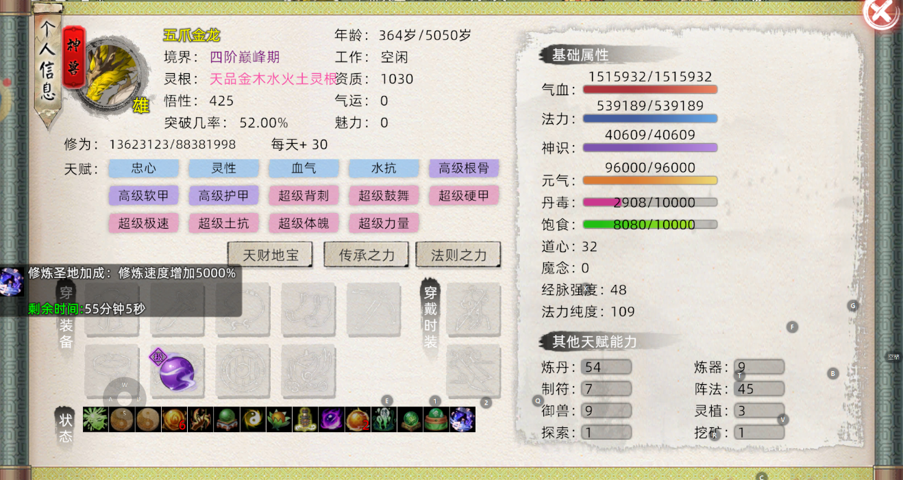 在《修仙家族模拟器 2》中,五爪金龙作为顶级神兽,凭借天品五行灵根与专属强力天赋,成为家族弟子战力飙升的核心助力。...